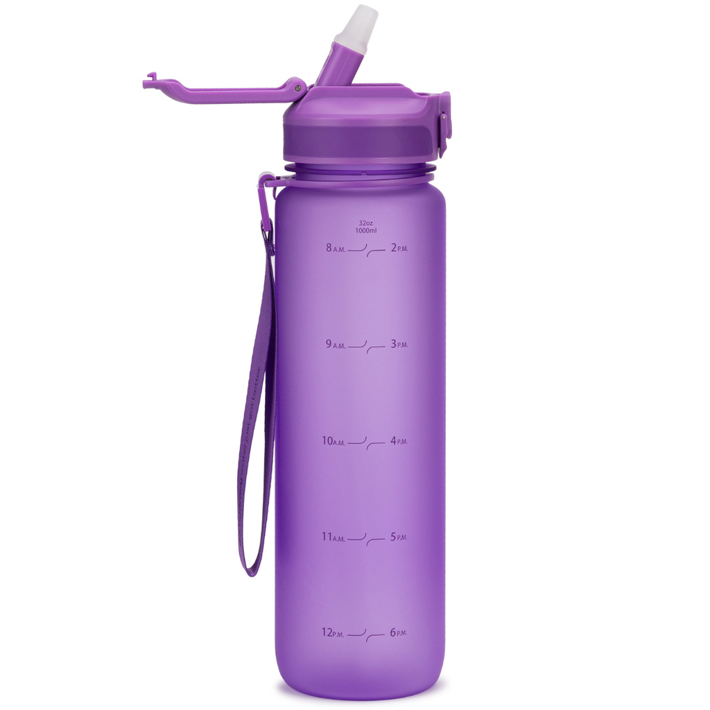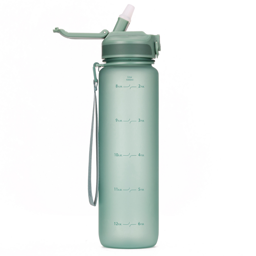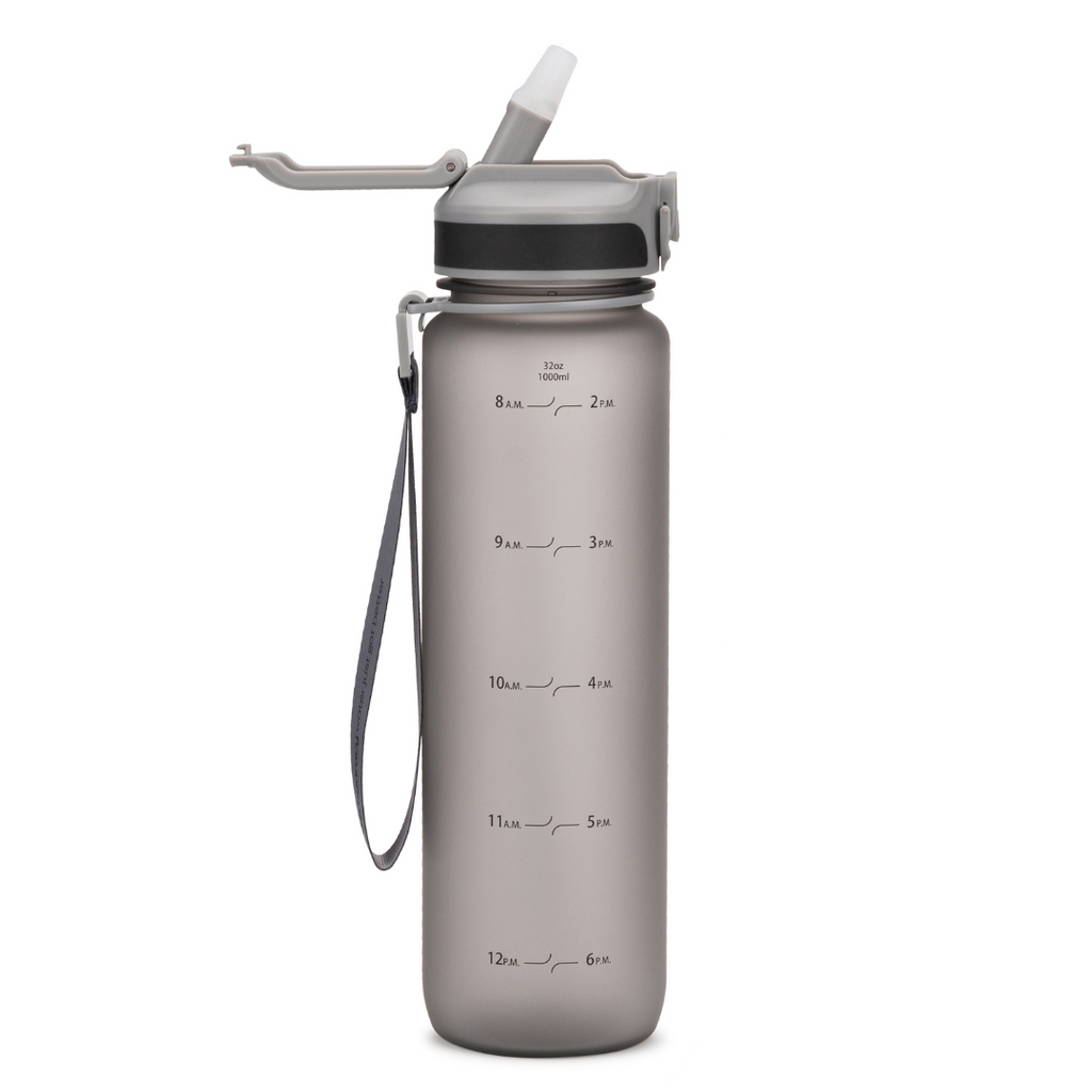 Embrace serenity in your journey with our elegant hydration companion. Crafted from durable, BPA-free Tritan plastic, our reusable 1-liter bottle ensures your hydration needs are met with sophistication and functionality. With its minimal-time marker design guiding your daily water intake goals, and a wide mouth for easy fruit 🍋 or ice🧊 infusion, this bottle perfectly complements a mindful lifestyle. Complete with a detachable travel carry strap and spill-proof flip-top lid, it's the ideal choice for serene yoga practice and beyond, reflecting a commitment to wellness and sustainability every step of the way.