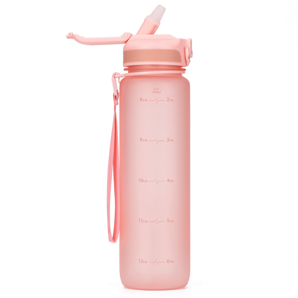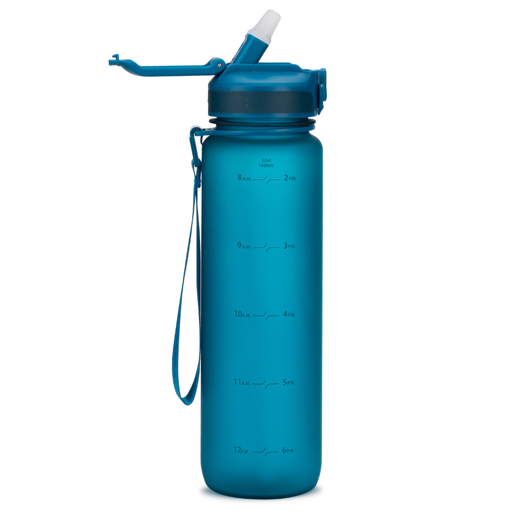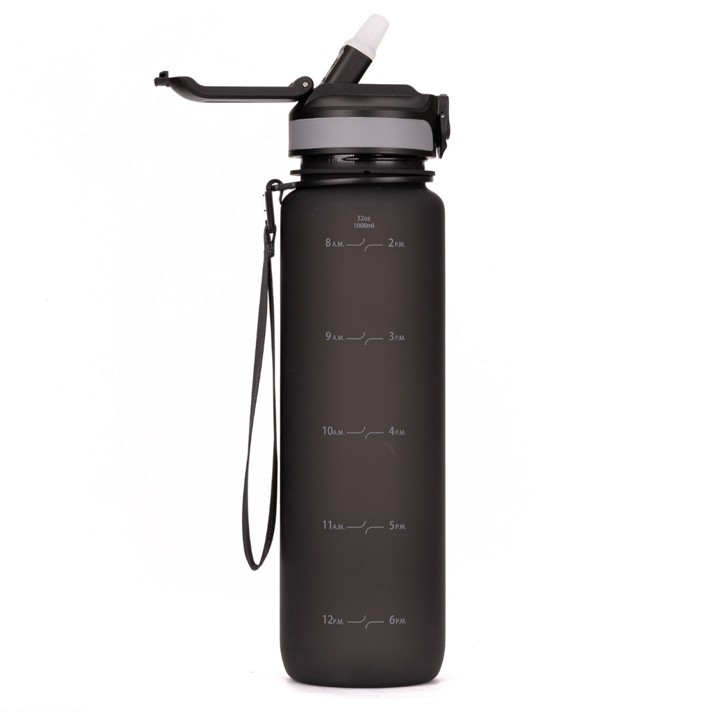 Embrace serenity in your journey with our elegant hydration companion. Crafted from durable, BPA-free Tritan plastic, our reusable 1-liter bottle ensures your hydration needs are met with sophistication and functionality. With its minimal-time marker design guiding your daily water intake goals, and a wide mouth for easy fruit 🍋 or ice🧊 infusion, this bottle perfectly complements a mindful lifestyle. Complete with a detachable travel carry strap and spill-proof flip-top lid, it's the ideal choice for serene yoga practice and beyond, reflecting a commitment to wellness and sustainability every step of the way.
